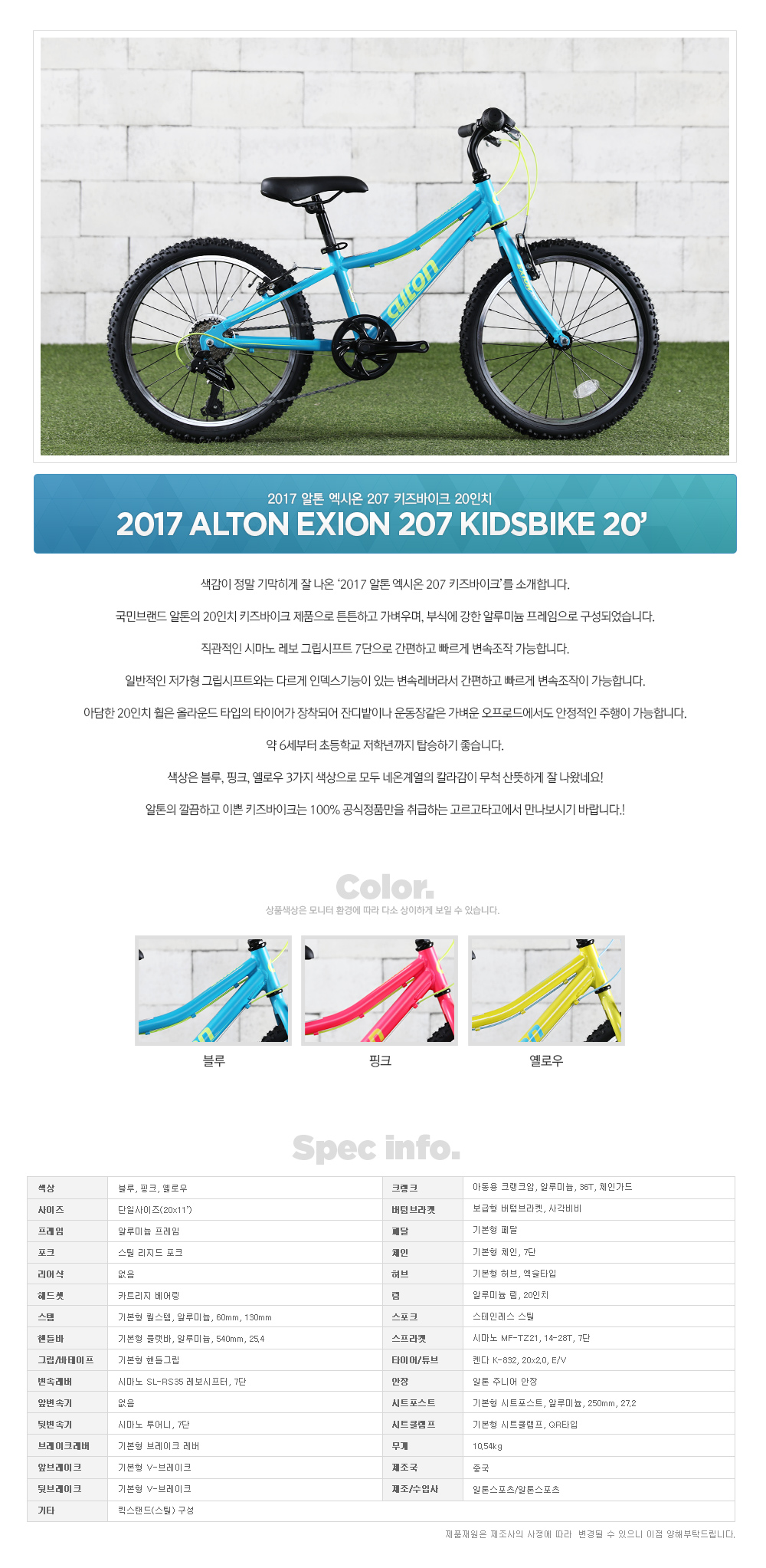 17 알톤 엑시언 207 키즈바이크 20인치