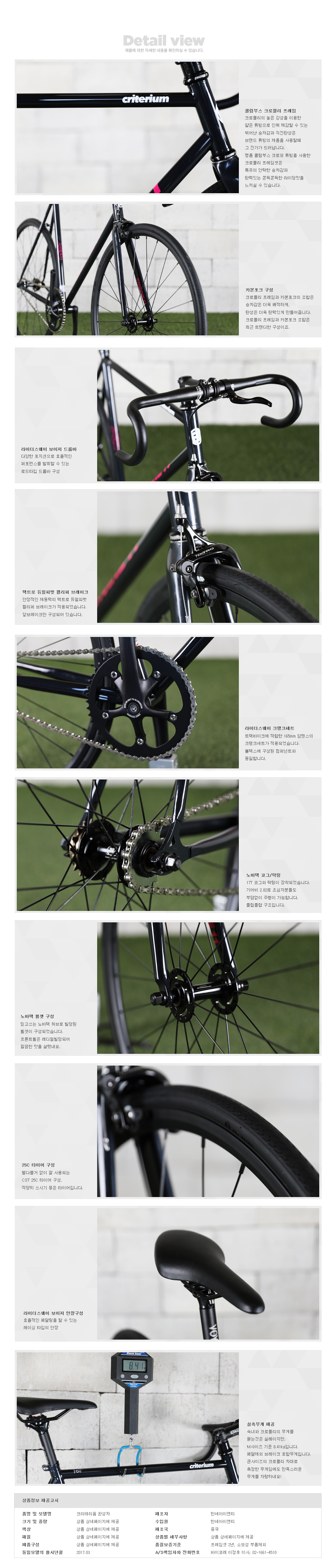 | 스프라켓 | 노바텍 17T코그, 락링, 프리휠 |