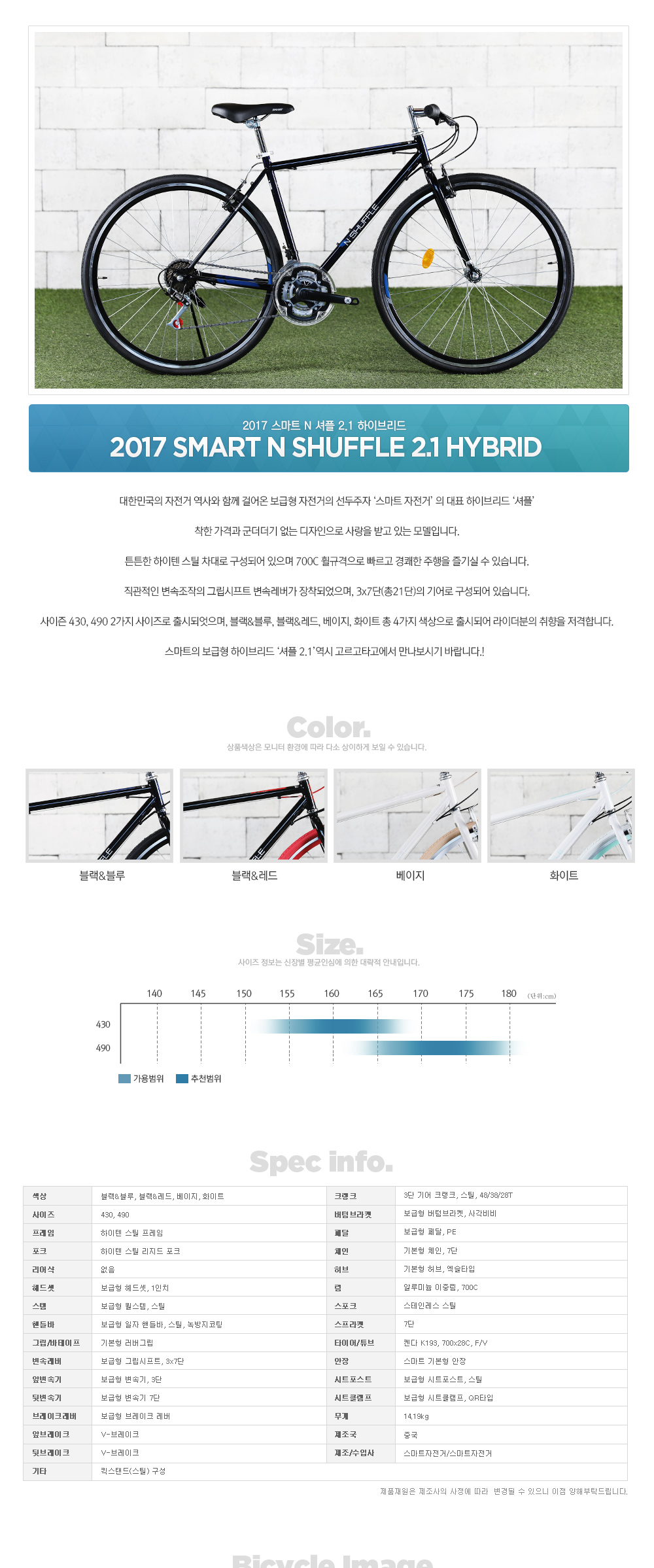 | 핸들바 | 보급형 일자핸들바, 스틸, 녹방지코팅 |