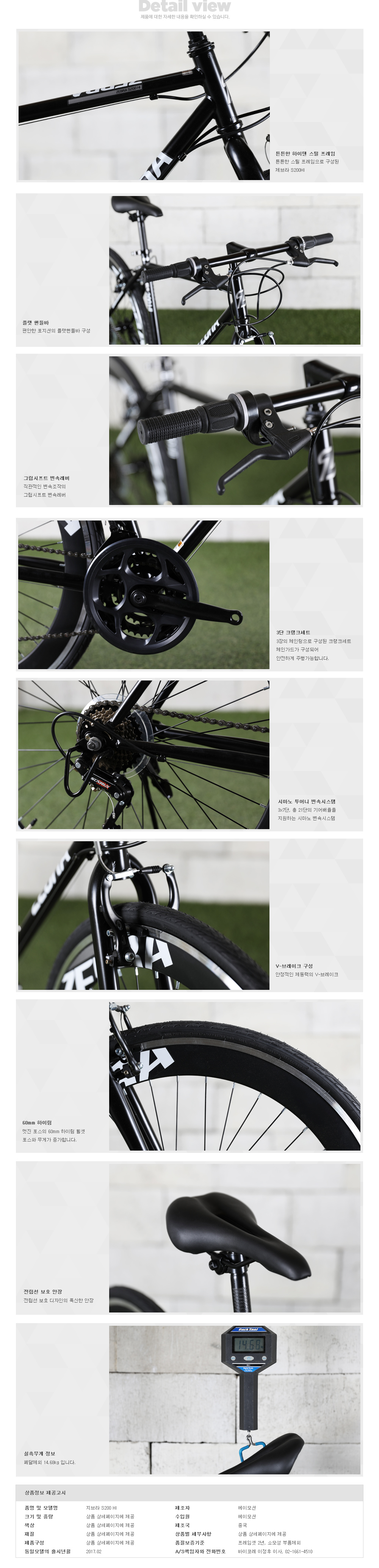 | 크랭크 | 스틸 크랭크, 48/38/28T, 170mm |