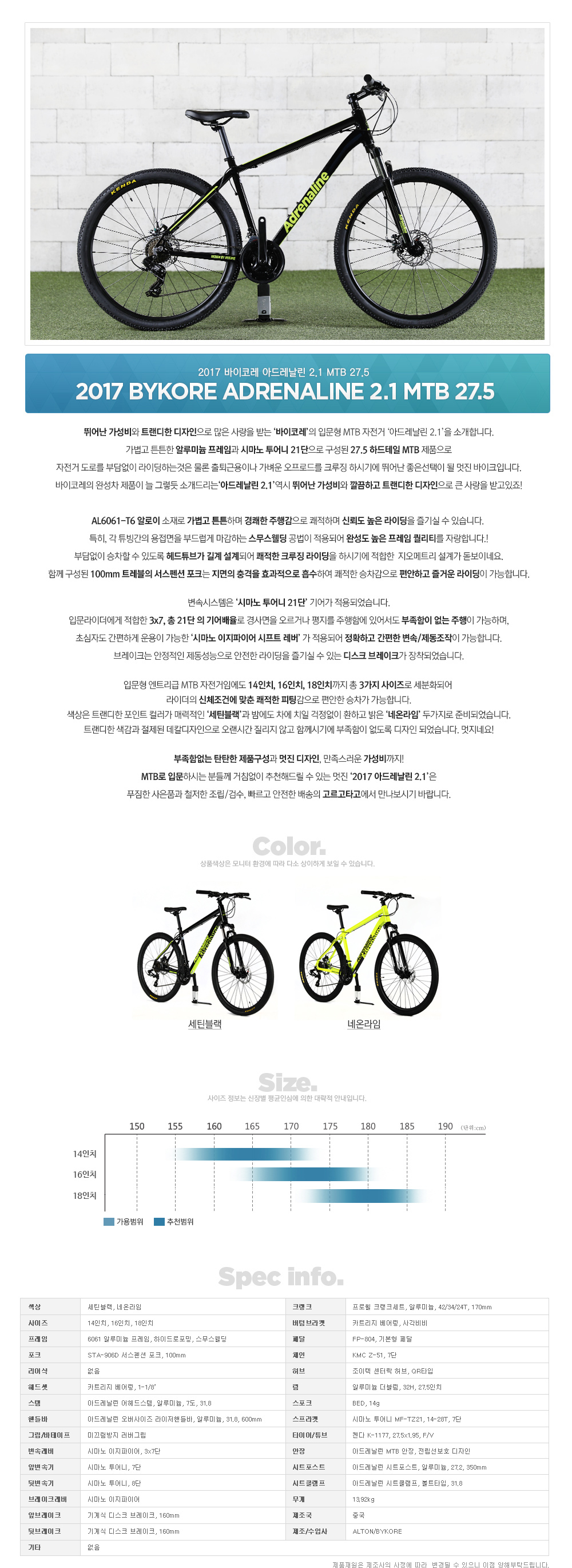 2017 바이코레 아드레날린 2.1 MTB 27.5