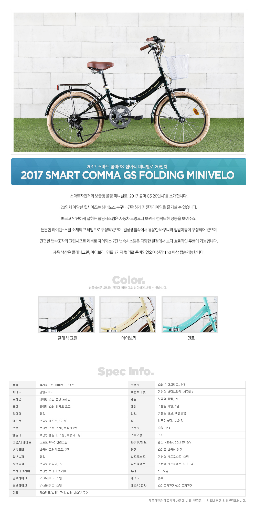 2017 스마트 콤마 GS 폴딩 미니벨로 20인치