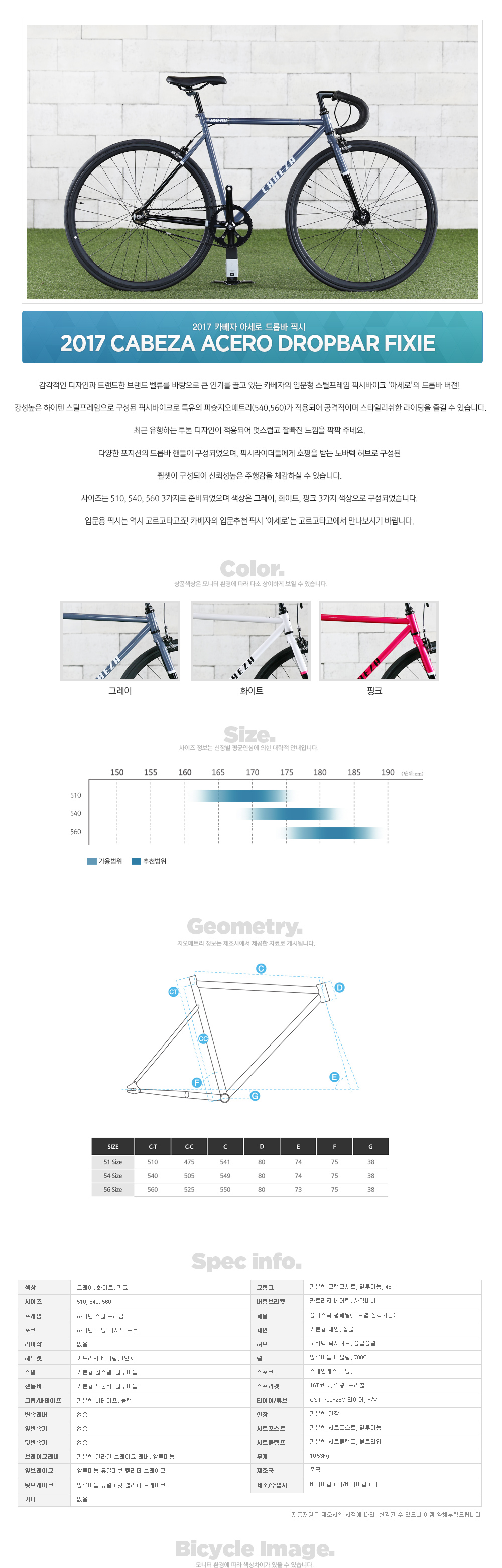 | 핸들바 | 기본형 드롭바, 알루미늄 |