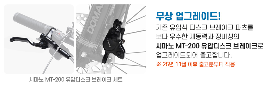 ※ 25년 11월 1일 출고분부터 기존 유압브레이크보다 우수한 성능의 [시마노 MT-200] 유압 브레이크로 변경되어 출고합니다.